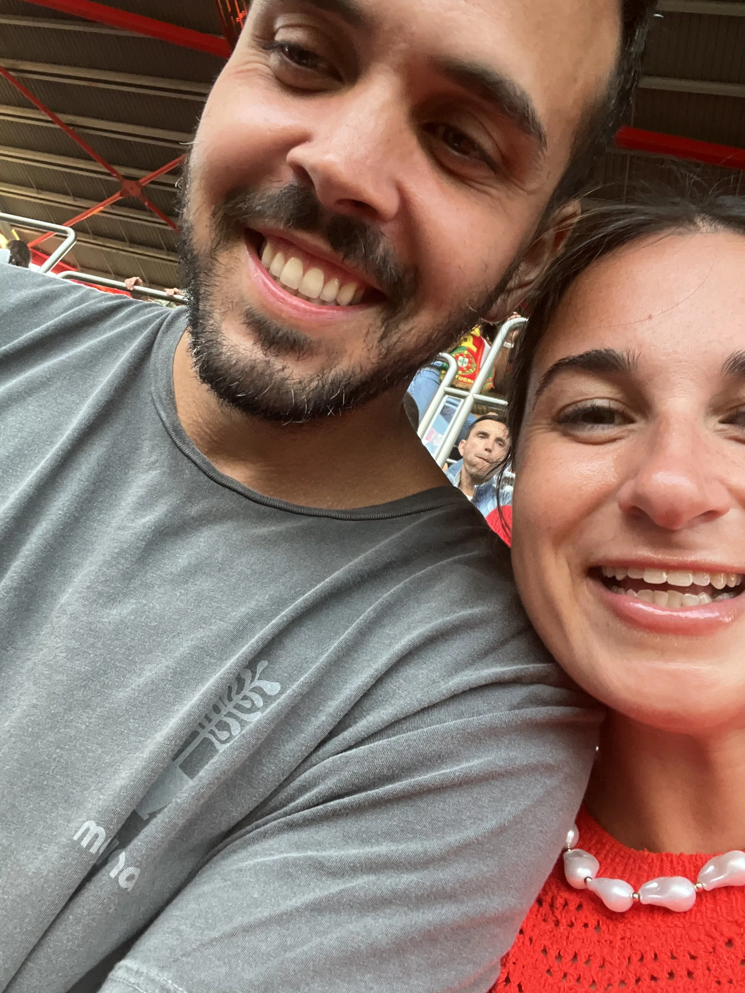 Go see a soccer game! // Have the best time watching a game at Estadio da Luz, easily accessible via public transportation. You can’t buy alcohol inside the stadium, but go early so you can have a cold beer and a delicious bifana (pork sandwich) in the tailgate area near the stadium. (Pictured— us doing exactly that!)